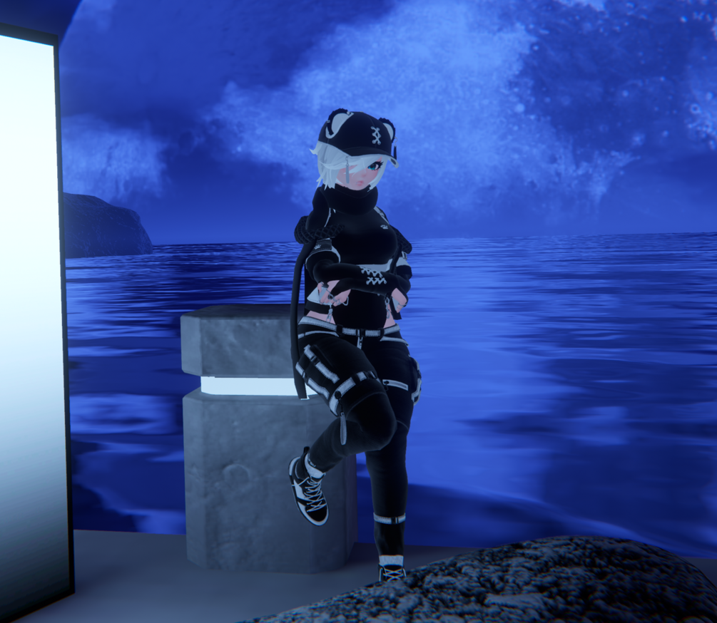 Jacket, bodysuit, hat, pants, shoes (substance designer), panties, pasties, mask, yoga ball, panda ears and tail made by me