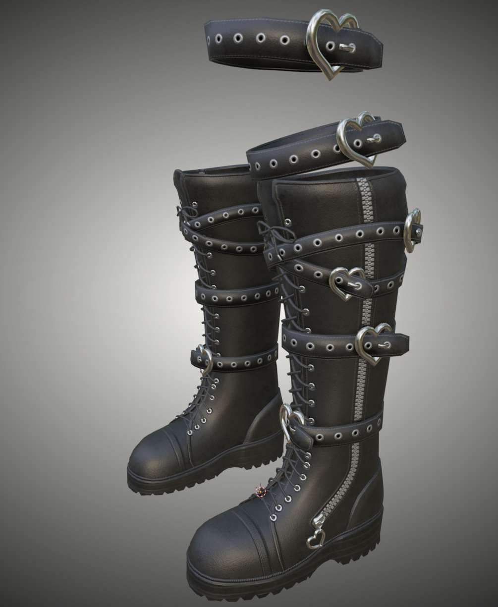 The metal on the boots will appear black in blender. That is because I include a matcap mask for unity. That way the metal is separated on the same material.
