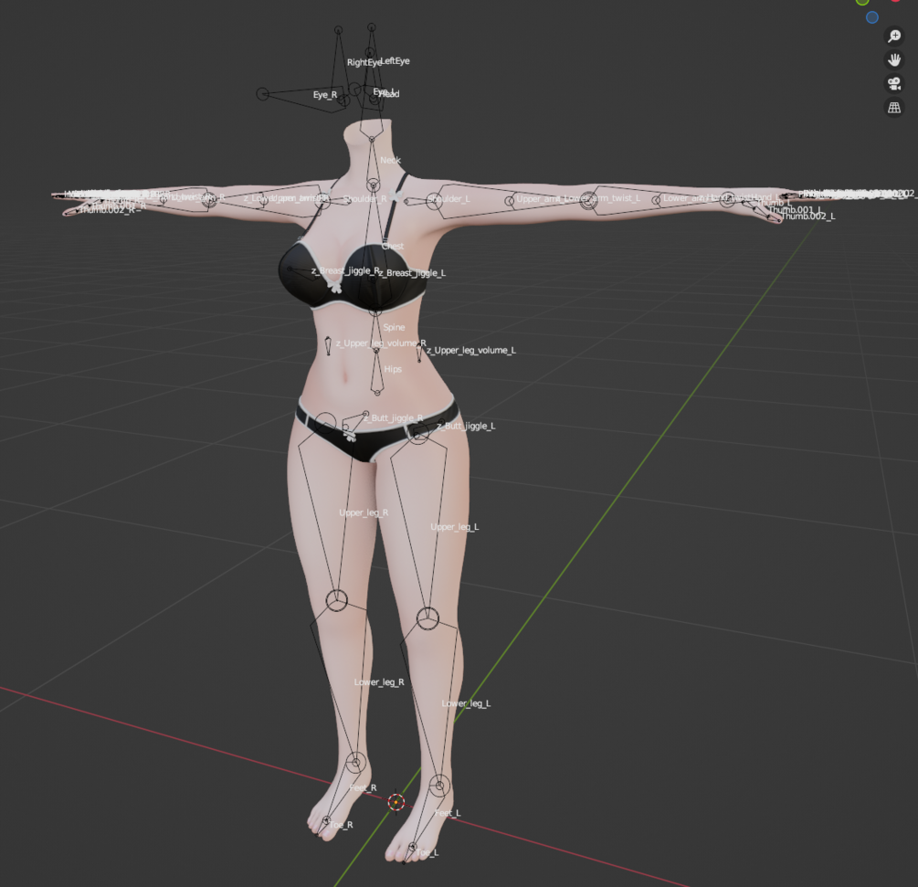 Twist bones on upper arms, wrists, and volume retention bones for waist.