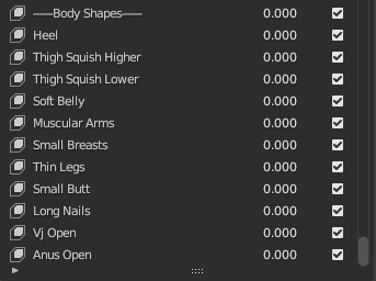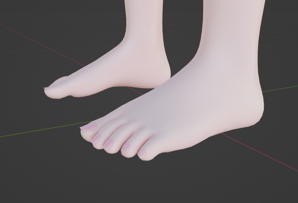 Shape keys set up for body customization. Includes flat foot -> heel shape key.
